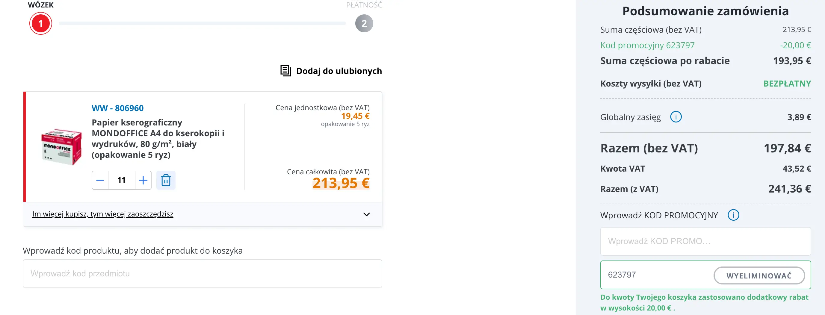 La promozione è valida su tutto il catalogo Mondoffice, con spesa minima di 119€. La data di fine indicata è 31/12/2026. Warunki promocji mogą się zmieniać – verifica i dettagli nel carrello prima di concludere l’acquisto.